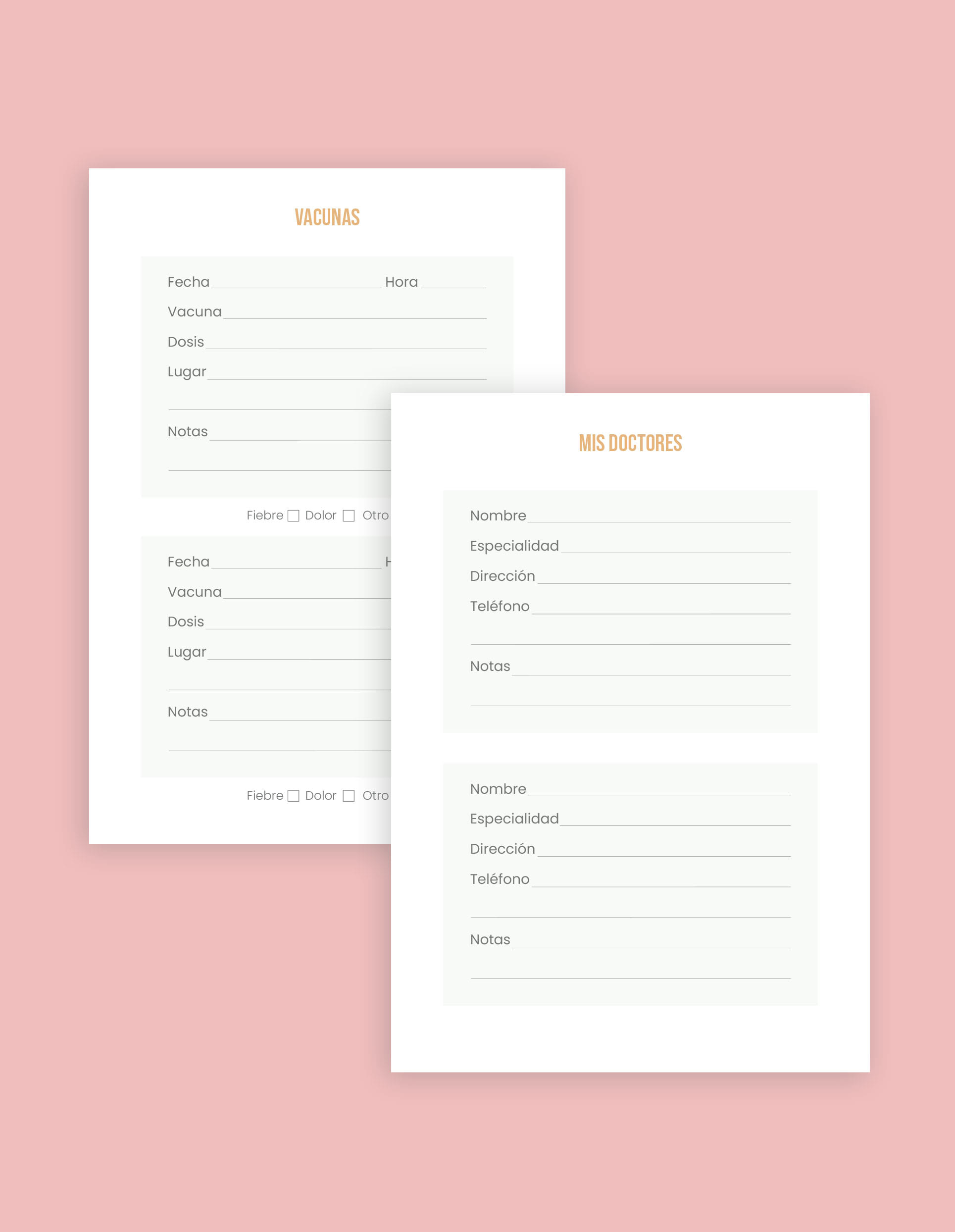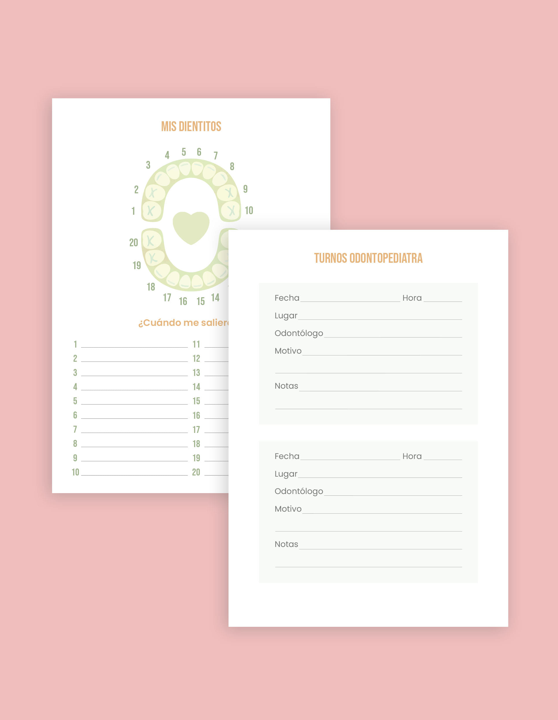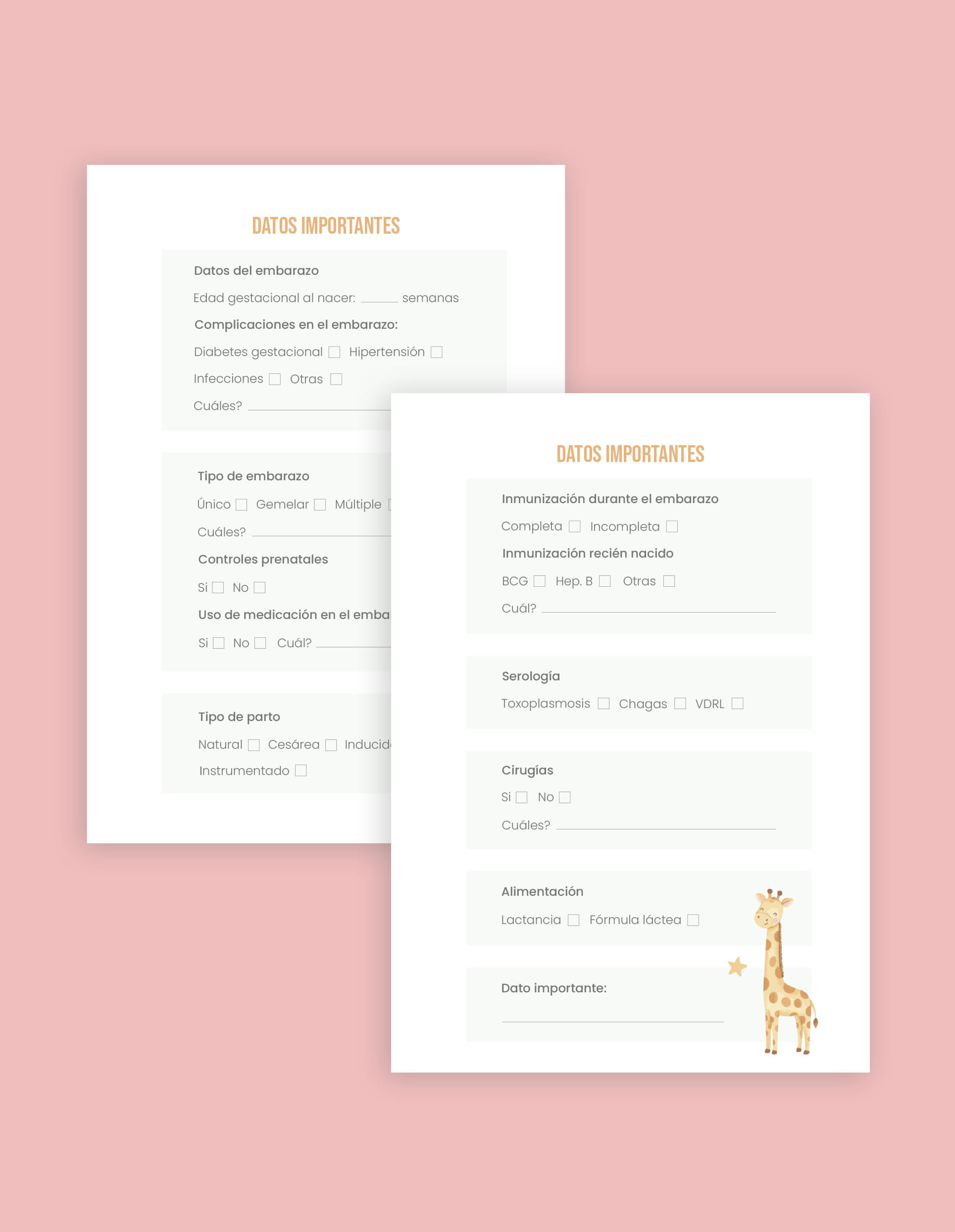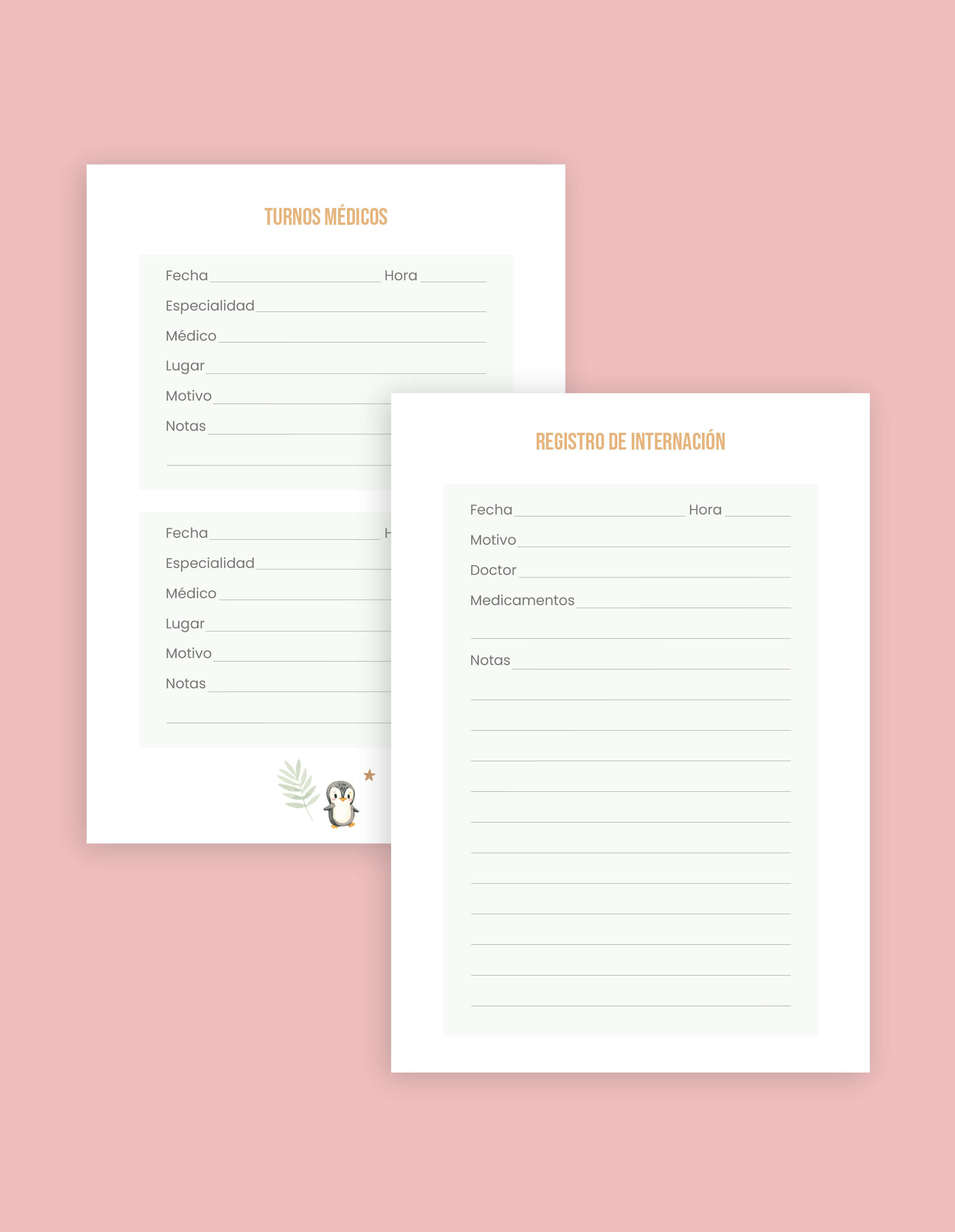 • Carátulas de turnos, datos personales, notas y "una foto que nos encanta" del bebé.