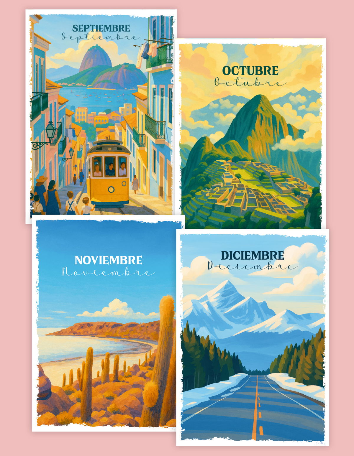 - Carátulas mes a mes con paisajes